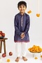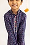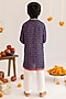 Featuring a blue kurta for boys in muslin base with print. It is paired with cotton pyjama pants. Style it with juttis and a watch for a festive occasion.