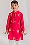 Deep Pink Muslin Gota Patti Embroidered Kurta Set For Boys