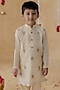 Ivory Muslin Resham & Sequin Embroidered Kurta Set For Boys