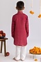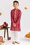Featuring a maroon kurta for boys in muslin base with print. It is paired with cotton pants. Style it with juttis and a watch for a festive occasion.
