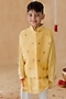 Mustard Chanderi Motif Embellished Jacket Set For Boys
