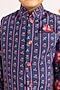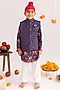 Navy Blue Muslin Printed Nehru Jacket Set For Boys