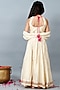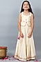 Featuring an off-white lehenga for girls in soft muslin base with zari embroidery and gota lace detail. It is paired with a blouse having piping detail and a dupatta. Accessorize it with matching hair accessories and sandals for a stylish ensemble, ideal for a sangeet or wedding ceremony.
