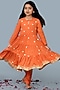 Rust Orange Soft Mulmul Cotton Gota Lace Kurta Set For Girls