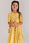 Yellow Soft Muslin Gota Hand Embroidered Lehenga Set For Girls