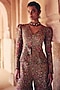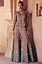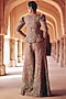 Featuring a black jacket in raw silk base with resham and zardosi hand embroidery, including leg-o-mutton sleeves and a metal zipper. It is paired with silk pants. Accentuate the designer jacket set with swarovski or meenakari jewellery, embellished heels and a clutch for a bridal look, Perfect for your sangeet or cocktail ceremony.