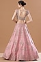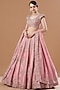 Featuring a blush pink lehenga in raw silk base with embroidery. It is paired with a matching blouse and a dupatta.