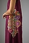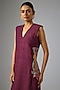 Featuring a burgundy dress in matka silk base with shoulder pad, mid-thigh slit and hand embroidery. Accentuate it with statement earrings and heels for festive occasions or wedding ceremonies.