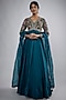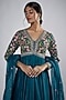 Featuring a cobalt blue anarkali in pure silk and raw silk base with embroidery. It is paired with an organza dupatta. Style it with ethnic dangler earrings and block heels for wedding ceremonies.