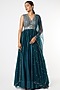 Featuring a dark teal blue anarkali in cotton silk base with embroidery. It is paired with a matching dupatta.