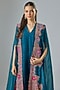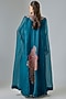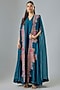 Featuring a dark teal cape in organza base with thread embroidery. It is paired with a matka silk dress. Accentuate it with dangler earrings and heels for festive occasion or sangeet ceremony.