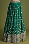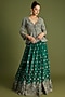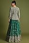 Featuring an emerald green jacket in raw silk and silk base with resham and zardosi embroidery. It is paired with a lehenga having boota work. Style it with statement jewellery and heels for mehendi or wedding ceremony.