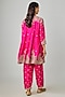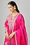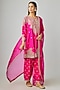 Featuring a fuchsia pink short kurta in pure silk base with zardosi hand embroidery. It is paired with embroidered salwar and a red organza embroidered dupatta. Accentuate it with kundan polki jewellery and block heels for festive celebrations, sangeet or wedding ceremony.