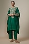 Featuring a green kurta in pure silk base with pearl and zardosi hand embroidery. It is paired with straight pants. Accentuate it with statement earrings and heels for any festive occasion or sangeet ceremony.