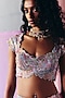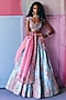 Featuring an ice blue lehenga in silk base with paisley, zardosi, resham and geometric motif embroidery. It is paired with a raw silk embroidered blouse and a light pink organza dupatta. Accentuate it with kundan polki jewellery, a potli bag and heels for a graceful look. Perfect for a wedding, sangeet or engagement ceremony.