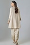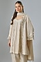 Featuring an ivory A-line kurta in pure silk base with paisley boots and zardosi hand embroidery. It is paired with pathani pants and a dupatta. Accentuate it with dangler earrings and heels for festive occasion or sangeet ceremony.
