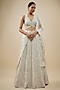 Featuring an ivory lehenga in raw silk base with zardosi, sequins and pearl embroidery. It is paired with an embroidered blouse and a dupatta. Accentuate it with statement jewellery and heels for a wedding, sangeet or engagement ceremony.