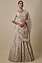 Featuring an ivory lehenga in satin organza base with hand embroidery. It is paired with a raw silk blouse having resham, pearl and zardosi hand embroidery, including an organza dupatta. Accentuate it with statement earrings and heels for weddings or a bridal look.