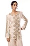 Featuring an ivory short kurta in silk base with metal zipper, geometric motif, zardosi and pearl embroidery. It is paired with embroidered sharara pants. Accentuate it with kundan polki or meenakari jewellery and embellished heels for a wedding or sangeet ceremony.