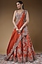 Orange Raw Silk & Satin Organza Zardosi Embroidered Lehenga Set