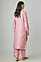 Featuring a pastel pink straight kurta in silk base with zardosi, pearls and motif hand embroidery. It is paired with silk straight pants and a pink organza embroidered dupatta. Accentuate it with zircon jewellery and block heels for festive celebrations, pooja or wedding ceremony.