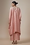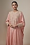 Featuring a peach kurta in pure silk base with pearl and zardosi hand embroidery. It is paired with straight pants. Accentuate it with statement earrings and heels for any festive occasion or sangeet ceremony.