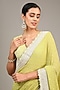 Featuring a lime green saree in georgette base with zardosi, sequins, resham, pearl and chittas embroidery. It is paired with an embroidered raw silk blouse. This saree is perfect for exuding elegance at weddings, festive gatherings, or special celebrations.