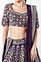 Featuring a purple lehenga in raw silk base with zardosi embroidery and jaal panels. It is paired with a matching blouse and a dupatta.