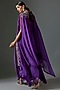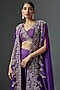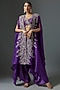 Featuring a purple cape in organza base with pearl and zardosi embroidery. It is paired with a raw silk blouse and pure silk pants having embroidered belt detail. Accentuate it with statement earrings and heels for a festive occasion or sangeet ceremony.