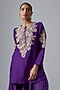 Featuring a purple kurta in pure silk base with zardosi and pearl hand embroidery. It is paired with pants. Accentuate it with minimal jewellery and heels for a festive occasion or sangeet ceremony.