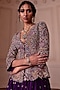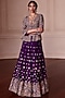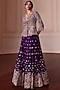 Featuring a purple jacket in raw silk and silk base with resham and zardosi embroidery. It is paired with a lehenga having boota work. Style it with statement jewellery and heels for a sangeet or wedding ceremony.