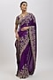 Purple Silk Hand Embroidered Saree Set