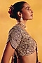 Mrunalini Rao features a mesmerizing Purple Saree Set that captivates with its elegance. The eye-catching saree is crafted in silk with paisley motif and zardosi hand embroidery. It is paired with a raw silk embroidered blouse having scalloped sleeves. Accentuate the designer saree set with a sleek low bun, kundan polki or gold jewellery, embellished heels and a potli bag for a traditional look. Perfect wear for your wedding or engagement ceremony.