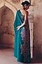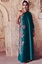Rama Green Silk Resham & Zardosi Embroidered One-Shoulder Kaftan