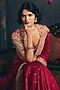 Mrunalini Rao features a mesmerizing Red Saree Set that captivates with its elegance. The eye-catching saree is crafted in chiniya silk with diamond, motif and zardosi hand embroidery. It is paired with a raw silk embroidered blouse. Accentuate the designer saree set with a sleek low bun, kundan polki or gold jewellery, embellished heels and a potli bag for a traditional look. Perfect wear for your wedding or engagement ceremony.