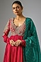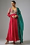 Featuring a red anarkali in silk base with resham, pearl and zardosi hand embroidery. It is paired with a green organza dupatta. Accentuate with statement jewellery and heels for a wedding, sangeet or engagement ceremony.