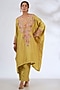 Yellow Silk Hand Embroidered Kaftan Set