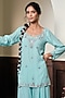 Aqua Blue Georgette Floral Embroidered Sharara Set