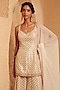 Featuring an ivory kurta in chanderi base with dabka hand embroidery. It is paired with georgette sharara pants and an organza hand-embroidered dupatta. Accentuate it with jhumkas and embellished juttis for a graceful look, Ideal for traditional celebrations, festive gatherings and wedding functions.