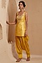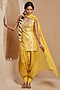 Featuring a mustard yellow kurta in chanderi brocade base with cutdana, sequins and pearl embroidery. It is paired with opada silk patiala salwar pants and an organza dupatta. Accentuate it with juttis and gold bangles for a vibrant ethnic look, Perfect for festivals, haldi ceremonies and cultural celebrations.
