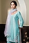 Featuring a pastel blue kurta in chanderi silk base with floral hand embroidery. It is paired with straight pants having side pockets and a pink and blue ombre organza dupatta. Accentuate it with pearl earrings and silver juttis for a graceful ethnic charm, Perfect for festive gatherings, daytime weddings and cultural celebrations.
