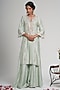 Sage Green Chanderi Silk Floral Hand Embroidered Sharara Set