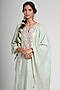 Featuring a sage green kurta in chanderi silk base with pink and ivory floral hand embroidery. It is paired with Sharara pants having side pockets and an embroidered dupatta. Accentuate it with jhumkas and embellished juttis for a graceful look, Ideal for traditional celebrations, festive gatherings and wedding functions.