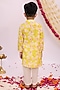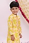 Featuring mustard yellow kurta for boys in silk base with floral print. It is paired with pants. Style it with a watch and a pair of mojris for a festive occasion.