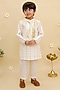 Featuring an off-white kurta for boys in cotton base with embroidery. It is paired with pants. Style it with a watch and a pair of mojris for a festive occasion.