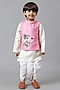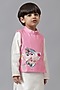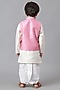 Featuring a pink jacket for boys in cotton base with embroidery. It is paired with a kurta and dhoti pants. Accessorize this set with mojris and a watch for a stylish ensemble, ideal for ceremonial events or any festive occasion.