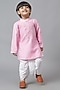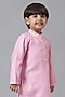 Pink Cotton Embroidered Kurta Set For Boys
