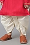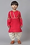 Featuring red kurta for boys in cotton base with embroidery. It is paired with dhoti pants. Style it with a watch and a pair of mojris for a festive occasion.