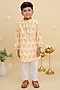 Featuring a yellow kurta for boys in cotton base with print. It is paired with pants. Style it with a watch and a pair of mojris for a festive occasion.