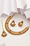 Gold Finish Green Stone Long Temple Necklace Set